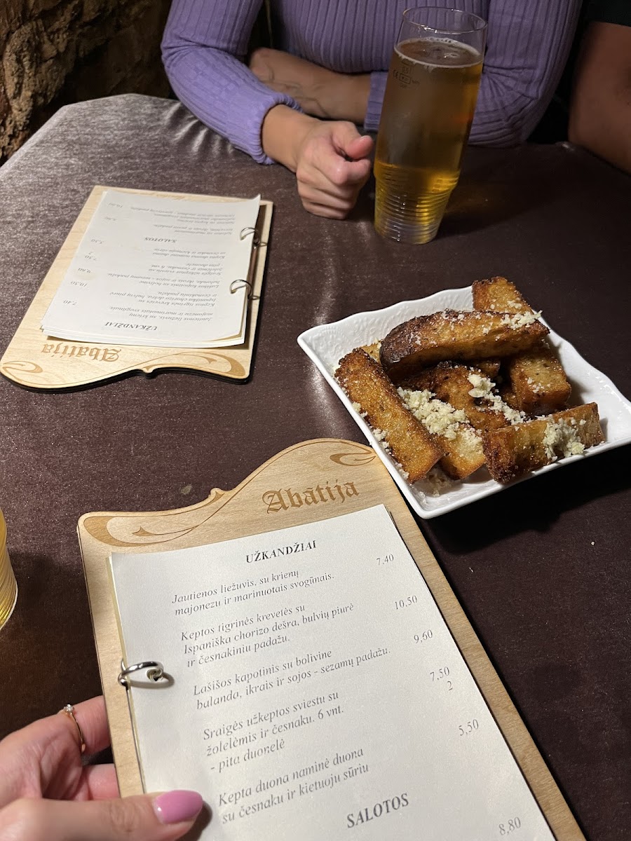 The menu at Restoranas Abatija offers a thoughtful selection of dishes that blend traditional Lithuanian flavors with refined presentation. It is designed for those looking to enjoy a relaxed dining experience where each plate invites a moment of calm and appreciation. You will find a variety of hearty main courses, including tender ėrienos kepsnys (lamb steak) and rich jaučio žandai (beef cheeks), alongside lighter starters like užkandžiai kepta duona ir sūrio spurgelės (fried bread and cheese bites).
